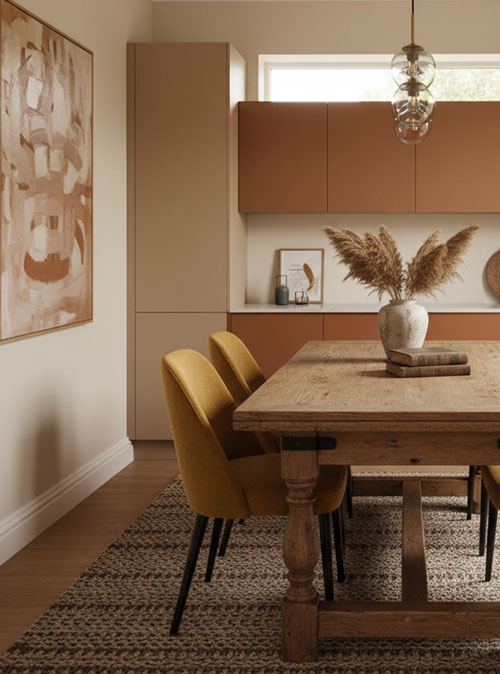 Il primo passo è definire un filo conduttore: può essere un colore dominante, un materiale ricorrente o una finitura specifica che faccia da ponte tra i due stili. Ad esempio, se ami il legno, puoi abbinare un tavolo antico in rovere con pensili moderni laccati opachi nelle stesse tonalità calde.