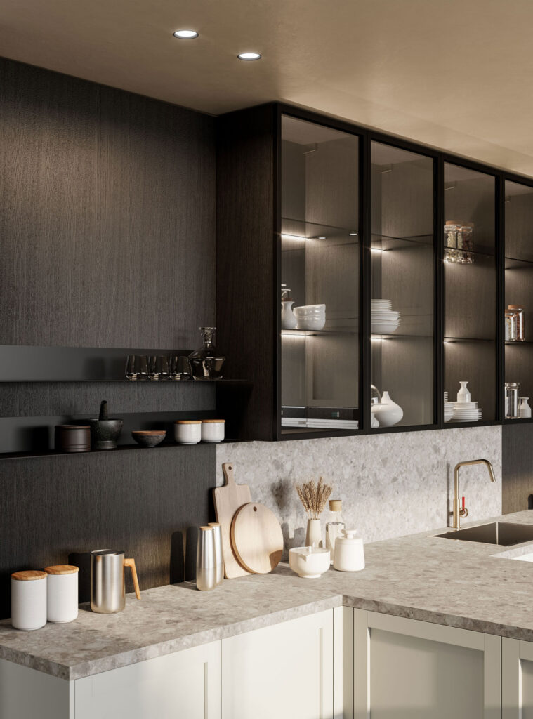 - La Luce Giusta: Studia bene l’illuminazione, con luci dirette sul piano di lavoro e una luce più soffusa per creare l’atmosfera giusta.